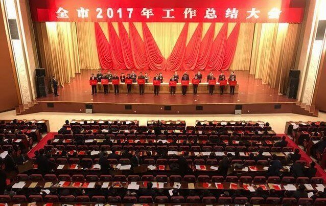 全市2017年工作总结大会在国际会展中心举行,市委副书记、市长张永霞出席并作重要讲话。大会对过去一年涌现出来的一批成绩突出的先进集体和先进个人给予表彰市领导为2017年度经济社会发展综合考核先进集体和先进个人代表颁奖,并兑现了制造业强市和创新驱动发展战略奖励政策。青岛水务积水科技有限公司被授予“经济发展功勋企业”,公司党委书记、董事长杨恒坤被授予“经济发展功勋个人”荣誉称号。